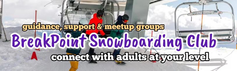 Becoming a "BreakPointer" will give you meetup opportunities at local mountains. Coach Dave connects members via WhatsApp and also lets us know where he is going so we can link up and see some familiar faces at the slopes. We aren't "connected at the hip" all day - rather we use our WhatsApp platform for helping each other out at random. It's independent adult snowboarders with community support!